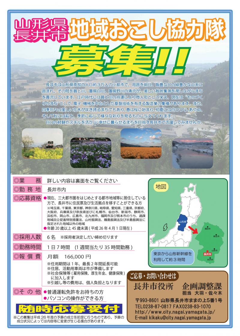 ▼長井市地域おこし協力隊を募集します。