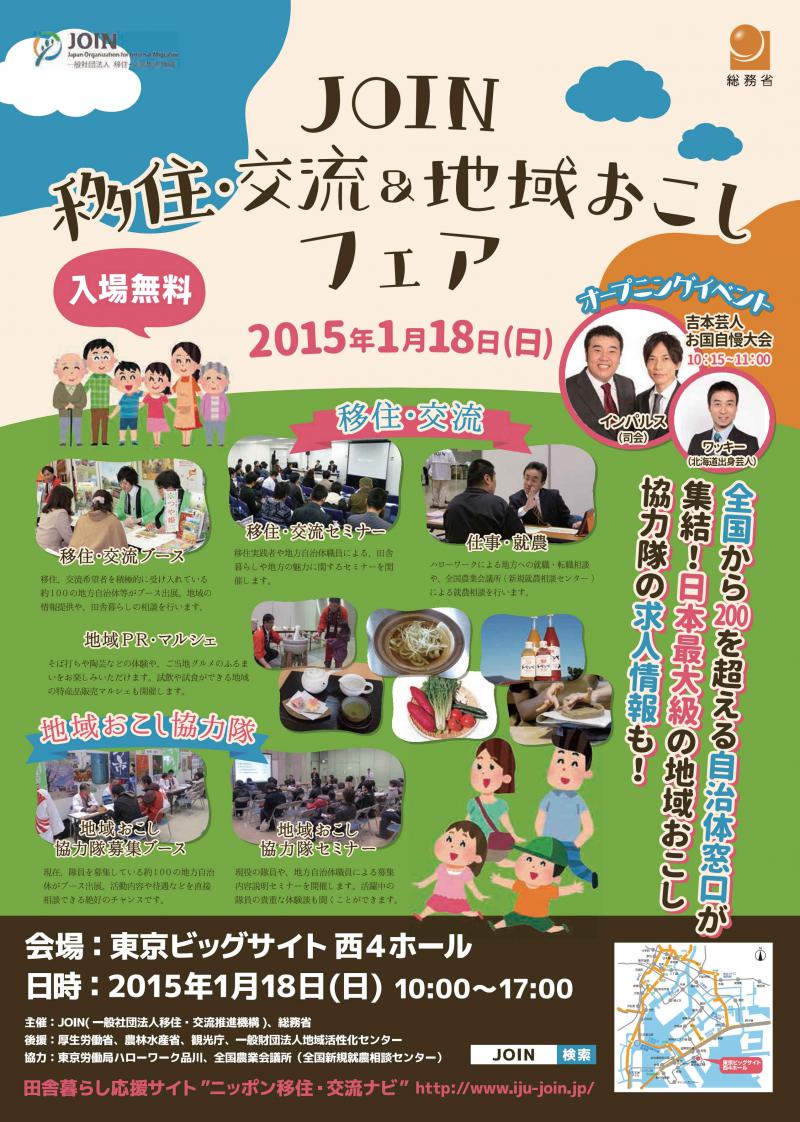 1月18日(日)に東京ビッグサイトにて開催される『JOIN移住・交流&地域おこしフェア』に出展します。