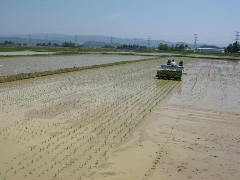 昔は沢山の人で田植えをしましたが、今はほとんど機械で植えていくので、10日ほどで終わります。今年も豊作を祈りながら1枚1枚丁寧に植えていきます。