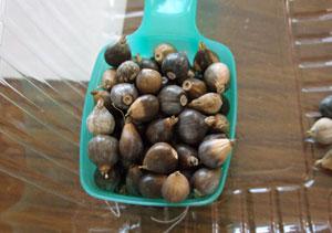 数珠玉は水辺に生育する大型のイネ科植物。形は均一な丸型ではな