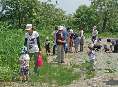 野外活動の先生にいろいろな草木を教えてもらったり、イタドリとい