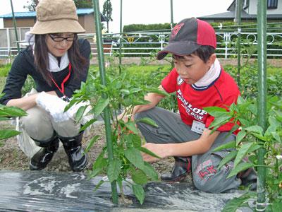 今回収穫したのはピーマンとズッキーニ。はさみを使って上手に採取する練