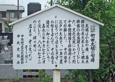 ▼☆中央地区史跡案内板(11)〜小出の八九翁 竹田太橘句碑