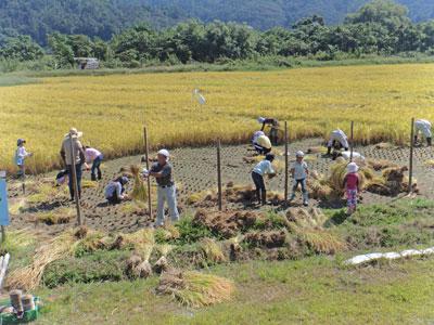 ▼☆やんちゃ たんぼのひろば〜稲刈りと杭がけ体験
