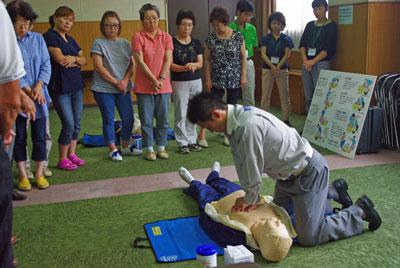 今回は心臓マッサージとAEDの使い方を中心に参加者全員が体験させてもらいま