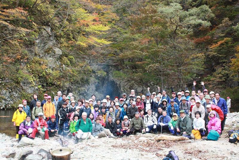 10月26日、このところの天候不順で降雨の心配もありましたが、予定通り三淵渓谷ふれあい登山を行いました。一般の参加者は当初の予定よりも20人以上も多い70人強で、下は10代から上は80代まで幅広い年齢層の方々に参加していただきました。