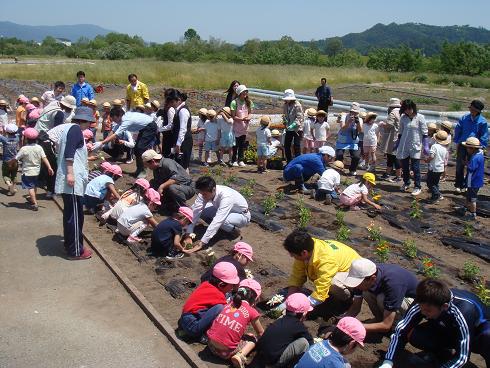 長井青年会議所では、今年度も長井橋のふもと最上川河川緑地公園の花壇にフラワーボランティア事業を行いました。市民のみなさんに里親になって頂くことで、花苗の植栽と管理を行い、よりいっそう地域と連携を図りながら長井市の魅力を発信していきたいと考えております。里親や市内の園児のみなさんに、花植えを行っていただきました。