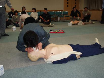 日時:2月16日(木) 19時〜 消防本部の方を講師として、心肺蘇生法、AED(自動体外式除細動器)について実演を含む講習を受けました。