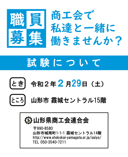▼令和元年度山形県商工会等職員採用試験の実施について