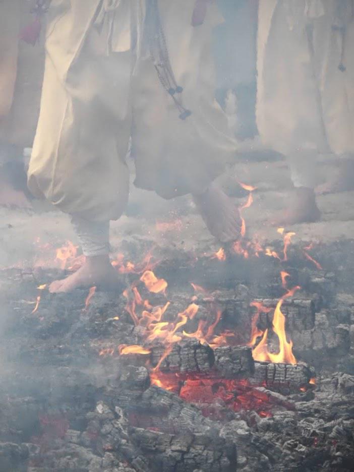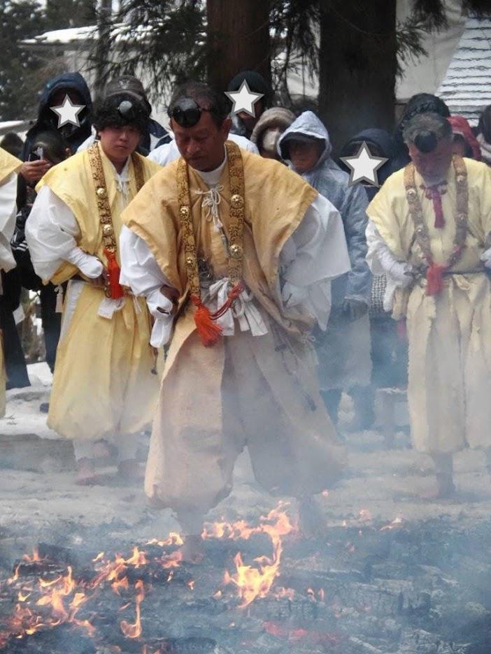 山伏たちによる祭燈護摩の御祈祷と、火渡りの荒行が行われます。