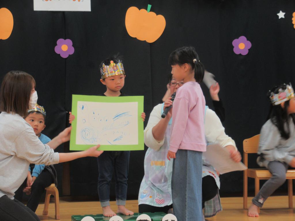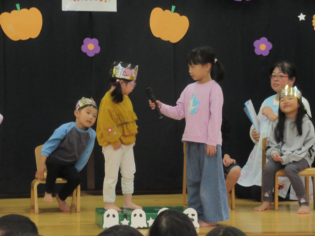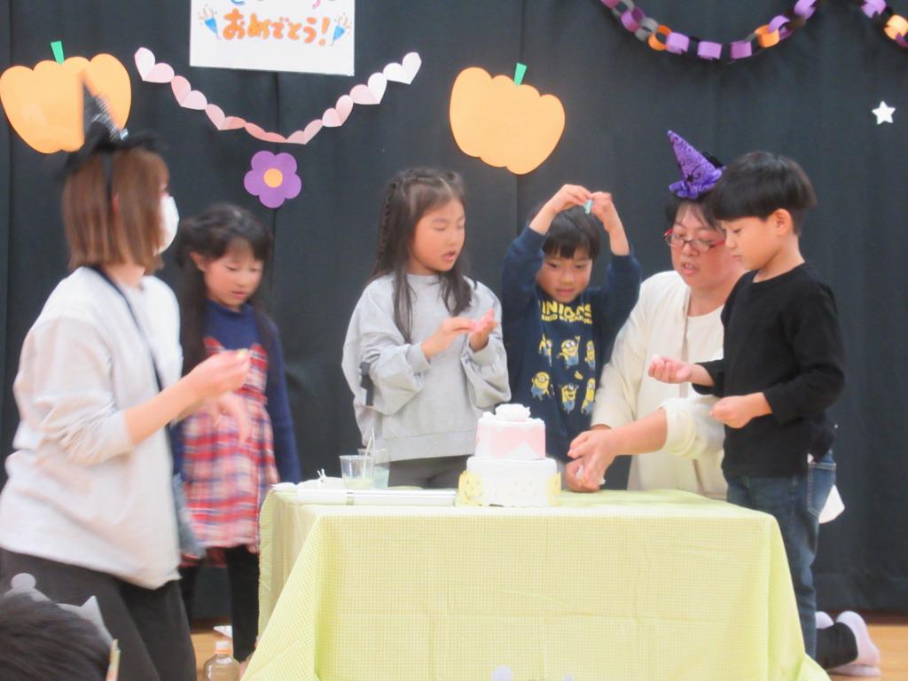 10月生まれの誕生会が行われました。緊張しながらも、得意なことを披露したり、好きなものやお気に入りのものを紹介したりしてくれました。保育者からのお楽しみ『マジックショー』では、ゆり組さんが大活躍。保育者と一緒に、秋らしい素敵なケーキを作ってくれました。
