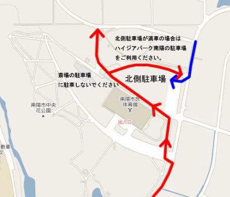 尚、市民体育館構内道路につきましては、別紙のとおり、送迎する方の為に一方通行させていただきますので予めご了承ください。