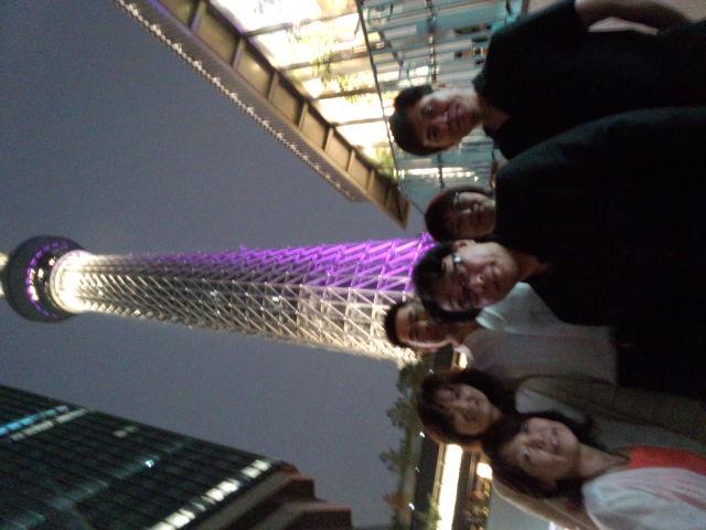 関東チーム、久しぶりに集まりました。今一番アツいスポット、スカイツリーです。先に帰った米田君、室岡君は残念ながら写ってません。ソラマチ、街中散策と、短いながらも楽しく見物してきました♪夜のスカイツリー、とっても綺麗でしたよ☆