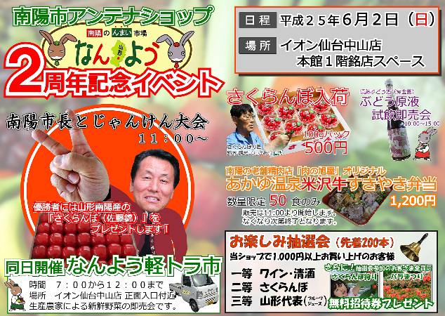 ▼南陽市アンテナショップ2周年記念イベントを開催します!!