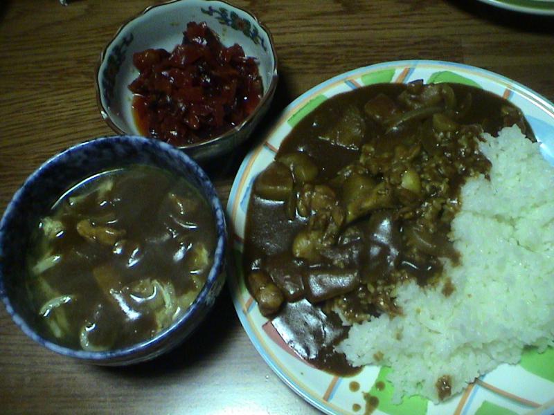 今日は、先日とは真逆で、辛いカレーフルコースです。夜ご飯食べる前に、おやつ程度に料理していたらいきなりフライパンから火が1メートルほど上がり遊びに来ていたT・H君そして、H・Sくんは、びっくり家の中は、とても焦げ臭かったです。カレーのほうは、うまかった。
