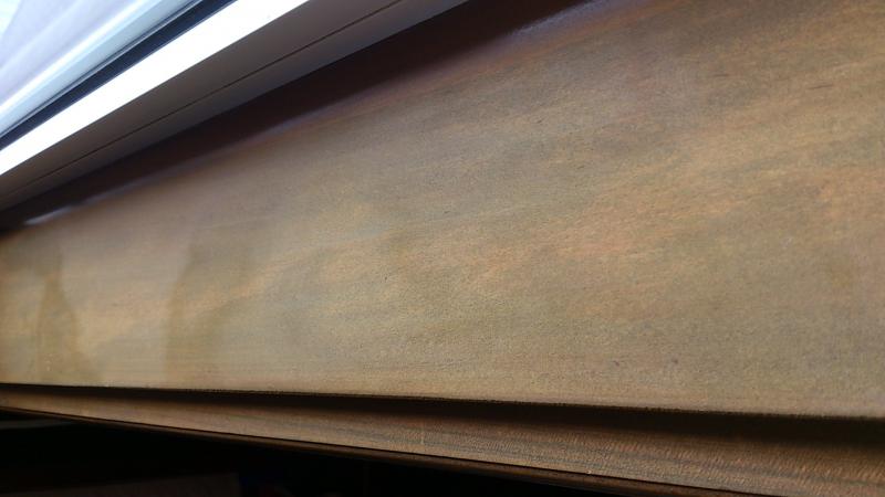 この窓枠は無垢材で築18年です、先の物件同様に南側の年中日が当たる場所です、塗 装の変化は見られますが化粧材の張り付けた物とはあきらかに違いますね!今の化粧材は改良されていると思いますが絶対にならないとは言えないと思います、無垢材の場合も、割れなど出て来ると思いますが、先の物件ほどにはなりにくいです、なったとしても、再塗装する事によって又綺麗になります、良い物を安く提供する事を心がけています。