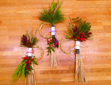 わら、昆布、松、南天など正月飾りに使われる材料の由来を学びながら、