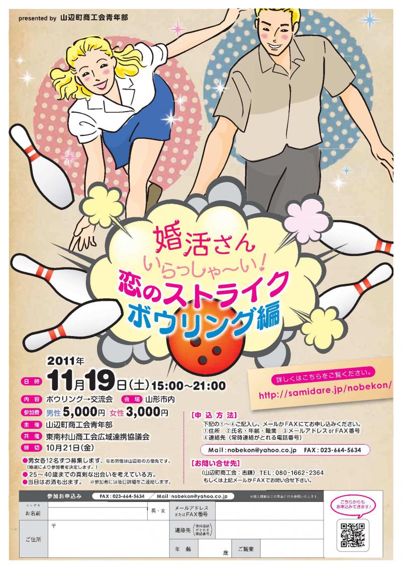 山辺町商工会青年部では真剣な出会いを考えている方の出会いの場「婚活さんいらっしゃい」の第2弾「恋のストライク〜ボウリング編〜」を企画致しました。