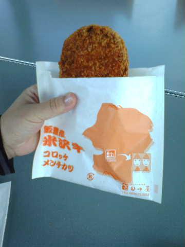 牛串焼き、コロッケ、最後は牛肉巻きのおにぎりとなりました。