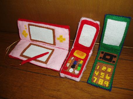 ついでにあまり布で、なんちゃって携帯を2人分縫った。