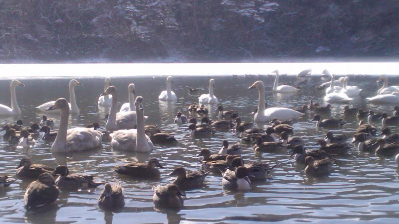 キーンと張りつめた空気の中、白鳥の鳴き声が響く。