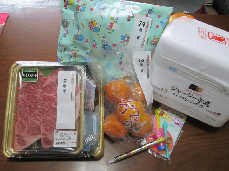 続いて10等デコポン、19等お菓子大袋パック、特別賞ジャージー牛乳アイスクリームギフト、そして末等チョコ棒10セット・・・。