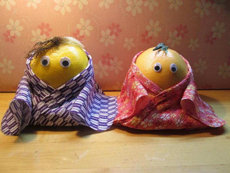 ゆかた風にチクチク縫ってかぶせてみました。