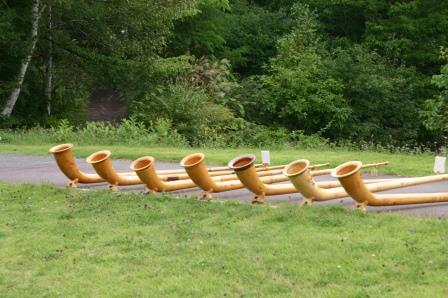 間伐材から手作りでアルプホルンを作る「アルプホルンクラブ」の原点は木曽の大桑アルプホルンクラブです。大桑クラブのメンバーを中心に全国の仲間たちがアルペン音楽の聖地・乗鞍高原に集う「スイス音楽会」は、合同演奏や情報交換の貴重な機会です。ここ数年はペンション・マドンナのユッコママこと中原由紀子さんが毎年セッティングしてくださいます。