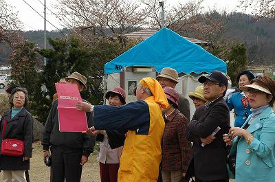こちらのツアーのお客様に久保桜について説明中。一生懸命説明を聞いていらっしゃいました。