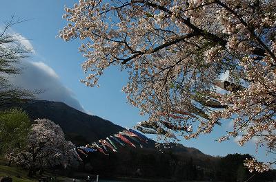 草岡の大明神桜から古代の丘の中里堤に足を延ばしていただきますと鯉のぼりがゆうゆうと泳いでいます。桜の次は、青空に泳ぐ鯉のぼりをご覧ください。