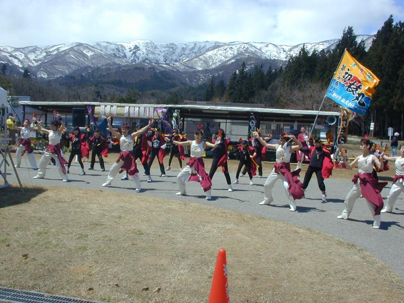 釜の越公園で23日よさこいソーラン踊りが披露されました。