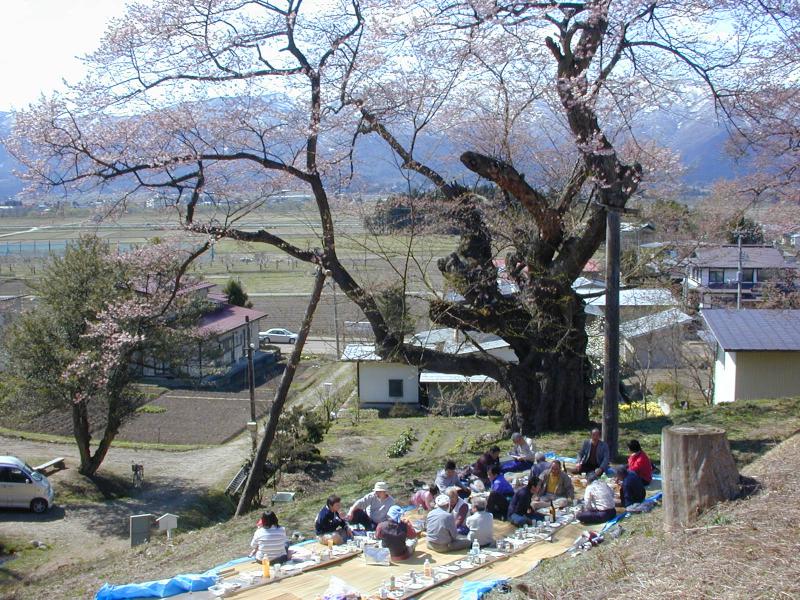 白鷹古典桜の里の中では最も早く開花するエドヒガンで、残雪を背景にした写真を撮影に多くのカメラマンが訪れます。