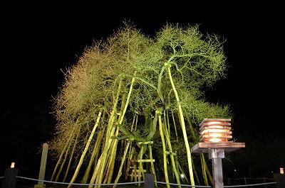 ライトアップされた久保桜は、とても幻想的でした。工科短大の学生の皆さんが作ってくれた新しいぼんぼりと一緒に写してみました。