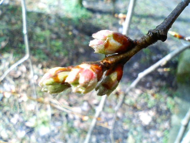 南陽市烏帽子山の名物、鳥居の脇にあるしだれ桜の状況です。今朝方の雪にも負けず、すくすく育っています。4月5日現在の花芽の状況はこのとおりです。