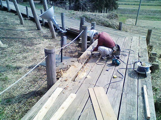 長井市伊佐沢の久保桜の4月10日の花目の状況を見に行ってきました。久保桜の周りの準備が着々と進められています。久保桜の周りの木道の補修工事も急ピッチで進められていました。こういった皆さんのお力添えがあり、1200年の時を越え久保桜は今までもこれからも元気に花を咲かせていくのですね。