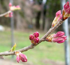 町中では、睦橋近くのシダレ桜や、町立病院前の広場のソメイヨシノなど、ちらほらと桜が咲き始めています。
