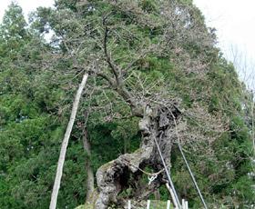 駐車場と桜の見学場所が少し離れています。狭い坂道を上がって行くのですが、途中に神社への石段や、こぶしの大木などがあり、風情を感じます。更には、桜の下に句碑があり、情緒をかき立てられる人も少なくないようです。