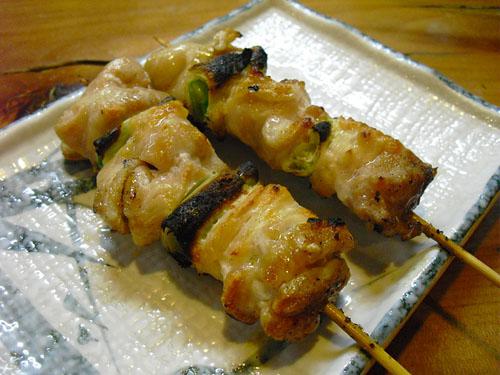 鶏肉の間にねぎが挟まった「ねぎま」。