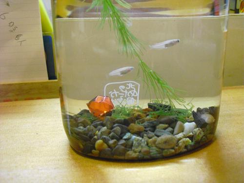 小さな【めだか】が3匹入った容器をいただいてきたのです。