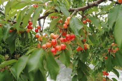 ▼赤々と実ったさくらんぼです