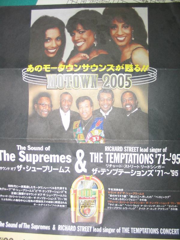 この年になると若者の音楽には、なかなかついていけましぇん。我ら団塊世代は、演歌にもやや抵抗があってか…おのずと青春時代に耳にしたナツメ音楽がなつかしいです。先月、60年代末に一斉風靡したR&Bの大御所テンプテーションズ、シュープリームズのコンサートに行ってきました♪