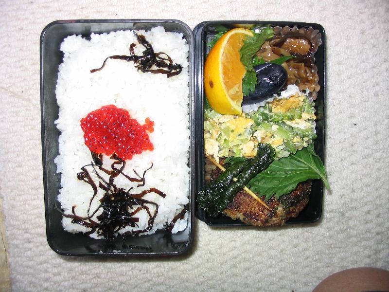 「毎日、人様に弁当を公開して何になるんだろう?」と深い疑問を抱きつつ、またアップしちゃいました(笑)。本日のメインデイッシュは手造りハンバーグ、それに肉なしのゴーヤーチャンプルー、昨日紹介しましたしそまきになすの漬物、きのこ、そして和歌山直送のオレンジ…、デザートが入ると実に彩りがいいですねぇ。自給素材で飽きないように毎日献立考えてくれて、ほんと我が家の専属シェフちゃうちゃう主婦には頭が上がりませんです。