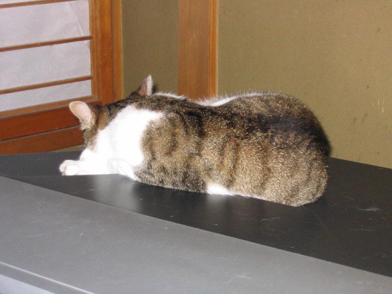 「写真はダメっていったじゃん、化粧落としたばかりでスッピンなんだから…」というのは、勝手に付けたコメントです。ほんと、このペットカテゴリーの「我輩は猫である」でもカキコミしましたが、ネコの自由奔放さがうらやましいです。何しろほとんど寝てばっかですからね。「お〜い、起きろ〜ご飯だよ〜」また寝てやがんの、ったく〜。