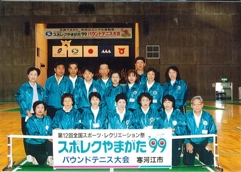 そんなわけで1999年、寒河江を開催地にスポレク開催。全国から選手を迎えて、スタッフとして無事やり終えた達成感に感動したものでした。そんなことから、今もバウンドにかかわっております。大会終了後、担当スタッフによる集合写真がこの1枚。