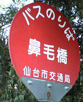 宮城県で、こんなバス停見かけました。「鼻毛橋」でも彼女と待ち合わせ場所にしたら、デートもぶちこわしでしょうね(笑)。