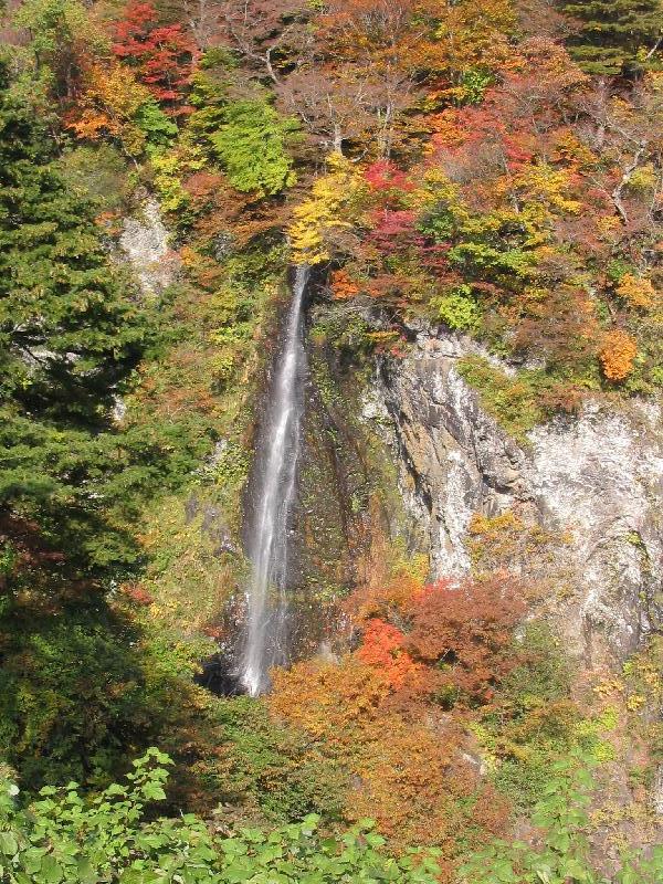 週末、秋田ツァーでの3発目です。山形県内陸痴呆もとい地方から庄内地方へ国道112号線の一般道でドライブするとき、必ず立ち寄るのが鶴岡市(旧朝日村)にある「米の粉の滝ドライブイン」。米の粉の滝は、梵字川に流れ込む合流点に懸かる滝で「米の粉の滝ドライブイン」の駐車場から眺めることが出来ます。落差約25mから直下に落ちる滝で、落下する水が米の粉のように見えることからこの名で呼ばれているらしいが(いわゆるライスシャワーという奴ですなw)、先週末訪れた日は紅葉で見事に囲まれていて、新緑時期と違う彩りと表情を見せていました。 冬になれば、水墨画のような違った顔でドライバーを和ませてくれることでしょう。
