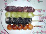 寒河江でだんごといえば三吉屋にきまっている。今時珍しく、5個ついている。種類は、焼きだんご(醤油)、ぬだ(じんだん)、あんこ、ごまの4種類だが、醤油だんごは、昔ながら常時囲炉裏(炭)で焼いているのが嬉しい。醤油だんご以外はオーダ後にトッピングしてくれる。