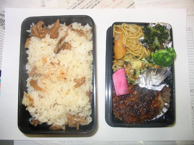 久しぶりの「今日のお弁当」、季節外れの舞茸ご飯です。これでもジューブン美味しいのですが、季節の牡蠣など入るとまだおいしいのですが、こればかりは稼ぎが悪いので…贅沢言えません(冷笑)。おかずは、焼きそばにハンバーグ、玉子焼き、ブロッコリー、山形の定番漬物のおみづけと赤カブ漬と工夫していただいてるのですが、やはりこの時期は季節感に乏しくなるのはいたしかたないか〜。