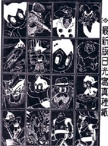 種紙と呼ばれる絵柄の印刷された紙には、人気の漫画キャラクターや時代劇、テレビの人気者などが描かれており、白い部分が光を通し黒く、黒い部分が光を遮って白く印画紙に写し出されるわけである。