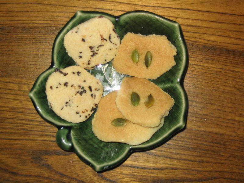 最近我が家でのマイブームがお菓子づくり。先日カミサンと娘がクッキーづくりの競演、左のたまねぎ入り(昆布ではありません)が娘、右のかぼちゃの種入り(ひまわりではありません)がカミサン作。普通クッキーは甘いものとの固定観念があるが、なぜかしょっぱい味がしてお茶に合うというより酒のつまみにピッタリ、たまたま分量を間違えたらしいが、結果的オーライでした!